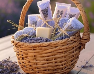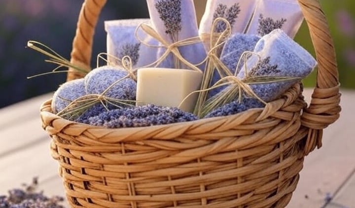 Lavanta temalı hediyelikler ve bakım ürünleri.